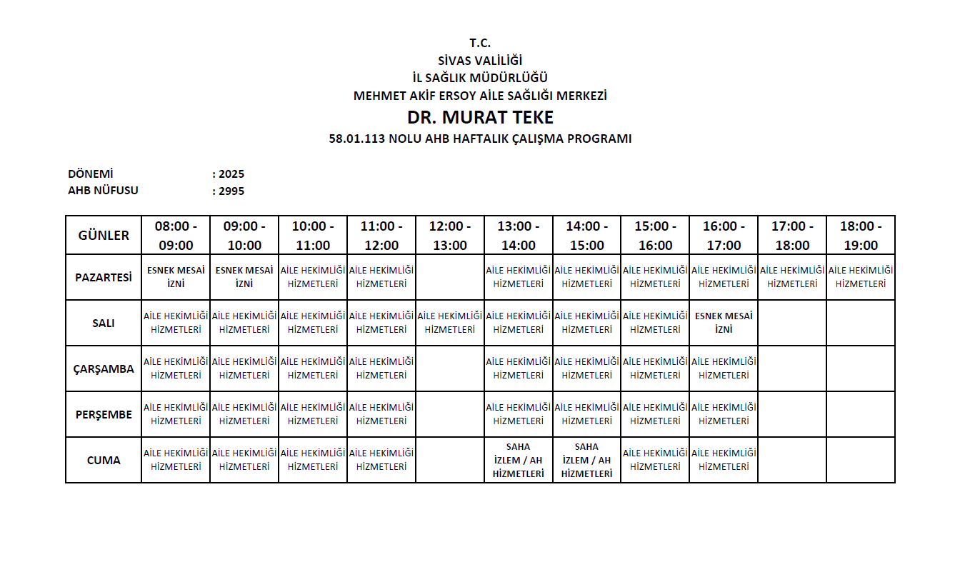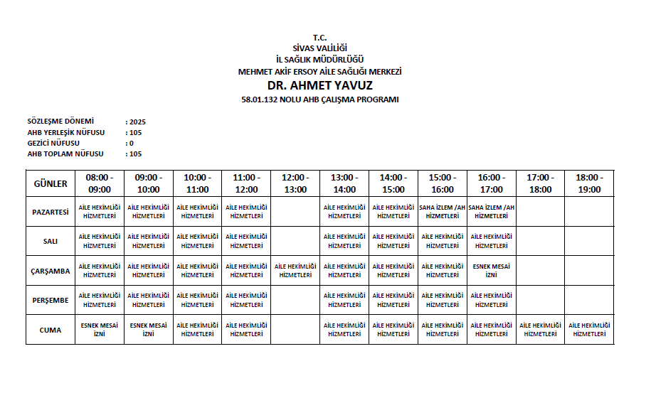 58.01.132 Nolu Aile Hekimliği Birimi