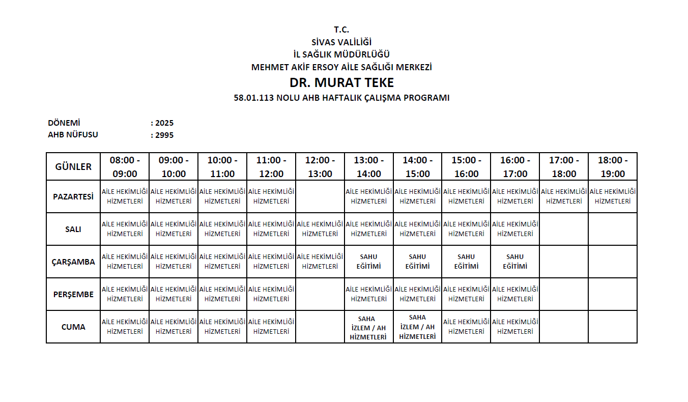 58.01.113 Nolu Aile Hekimliği Birimi