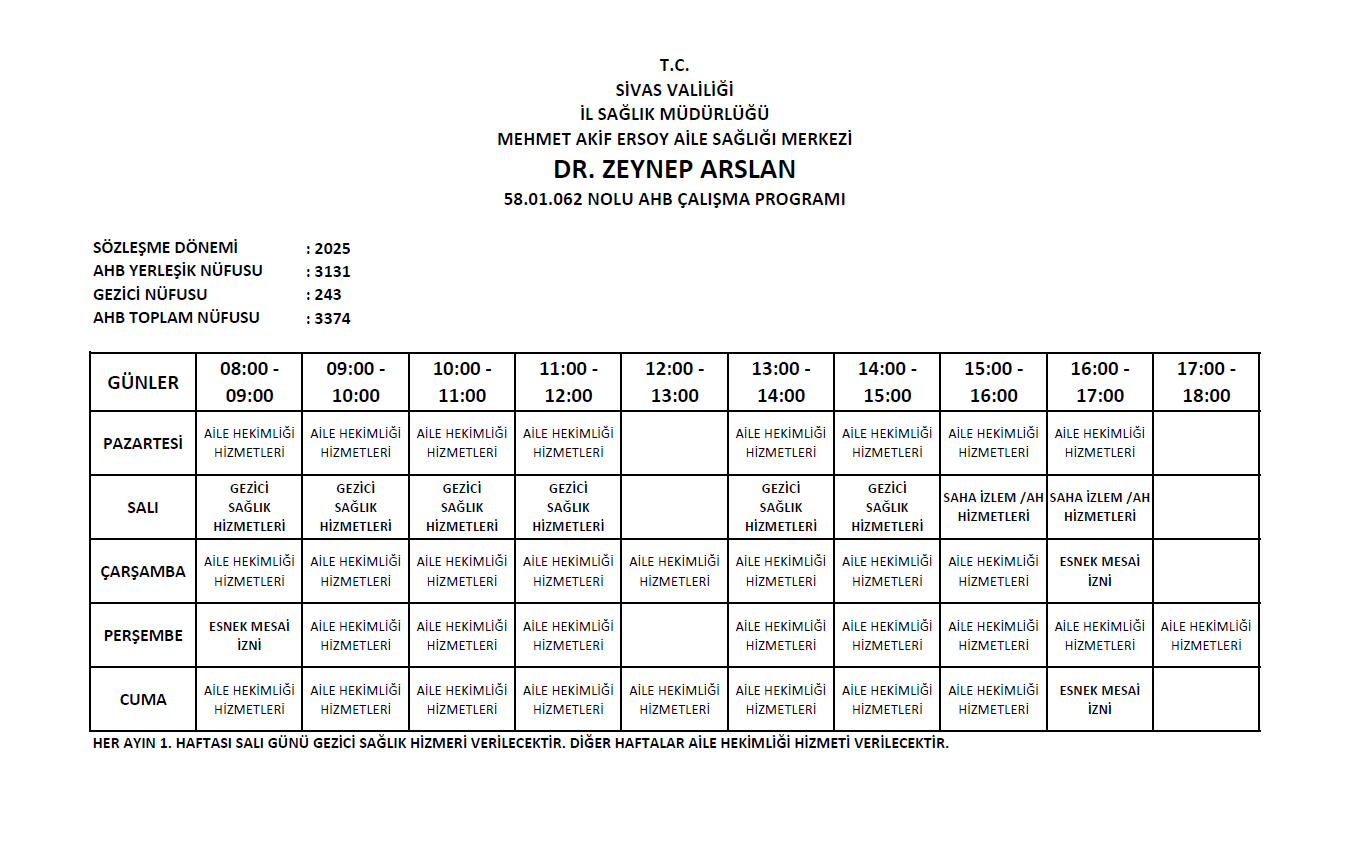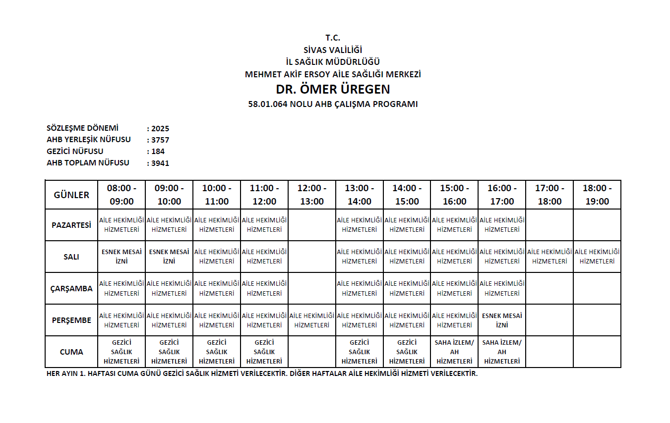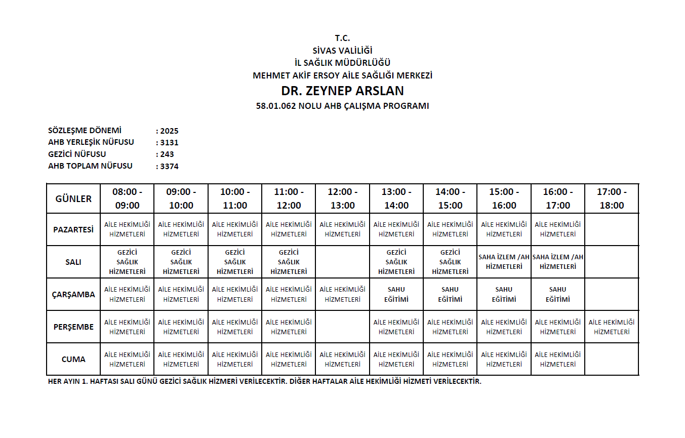 58.01.062 Nolu Aile Hekimliği Birimi